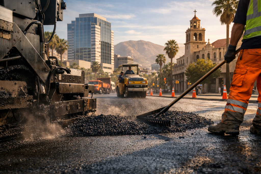 Downtown Riverside isn’t your typical suburban neighborhood. It’s a layered urban environment with wide, busy boulevards, tight commercial alleys, historic districts, and a diverse mix of old and new buildings. That complexity creates unique challenges for asphalt work that not every contractor is equipped to handle.